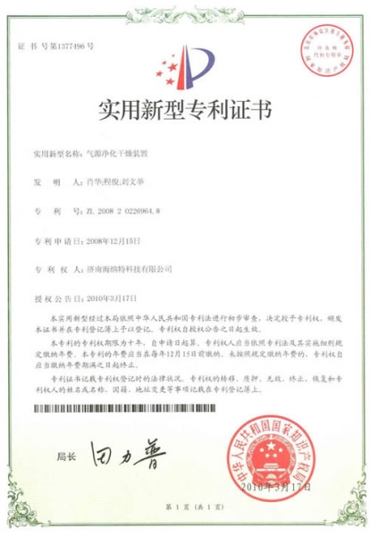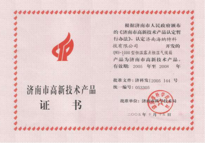 - VOC及甲醛釋放量檢測氣候箱專利證書